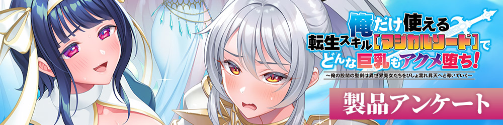 こちらは「俺だけ使える転生スキル【マジカルソード】でどんな巨乳もアクメ堕ち!」専用アンケートフォームです。作品へのご意見・ご感想などをお寄せください。 ※製品サポート用フォームではございませんのでご注意ください。(≫製品サポートはこちらから)